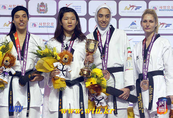 Taekwondo – 2015 WTF World Taekwondo Championships – Chelyabinsk, Russia – Women ’57kg – Hamada (G), Calvo Gomez (S), Alizadeh (B) and Kotsis (B)