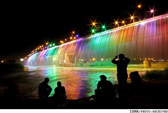 Seventh Bridge or Bridge of Dialogue among Civilizations in Ahvaz, Iran – On weekends you can enjoy the rainbow waterfall.