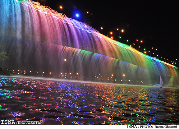 Seventh Bridge or Bridge of Dialogue among Civilizations in Ahvaz, Iran – On weekends you can enjoy the rainbow waterfall.