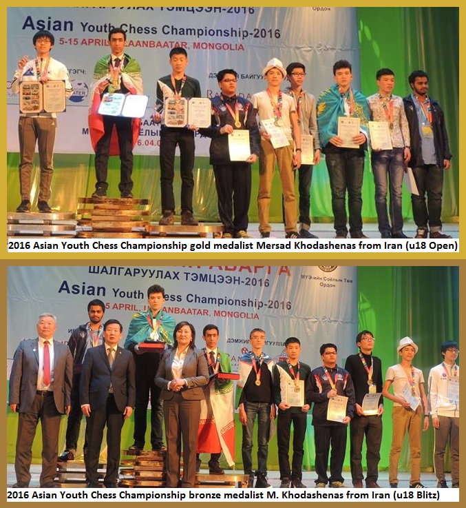 2016 Asian Youth Chess Championship – Mersad Khodashenas from Iran (Gold medalist at under-18 Open and bronze medalist at under-18 Open Blitz)