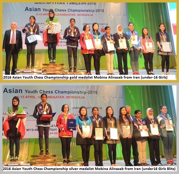 2016 Asian Youth Chess Championship – Mobina Alinasab from Iran (Gold medalist at under-16 Girls and silver medalist at under-16 Girls Blitz)