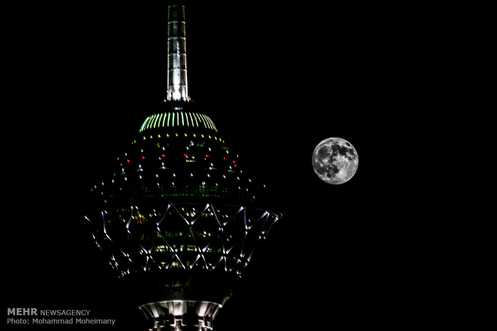 Supermoon at Milad Tower (Borj-e Milad) in Teheran, Iran (Photo credit: Mohammad Moheimany / MEHR)