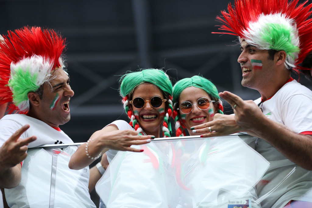 Iranian fans in St. Petersburg Stadium, Russia supporting their team during Morocco vs Iran (photo Richard Heathcote, Getty Images Europe)