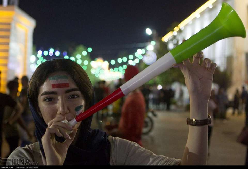 Iranian fan celebrating the victory of her team in Rasht, Gilan. Photo credit: IRNA.